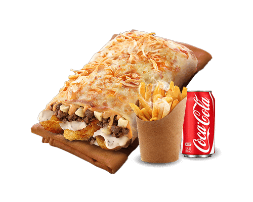 Bœuf haché mariné, boursin ail et fines herbes, oignons rings, sauces au choix, gratiné mozzarella et oignons crispy. Avec frites maison et sauce fromagère.