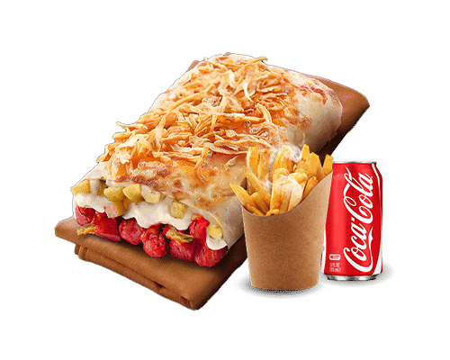 Poulet tandoori, sauces au choix, boursin nature, gratiné mozzarella et oignons crispy. Avec frites maison et sauce fromagère.